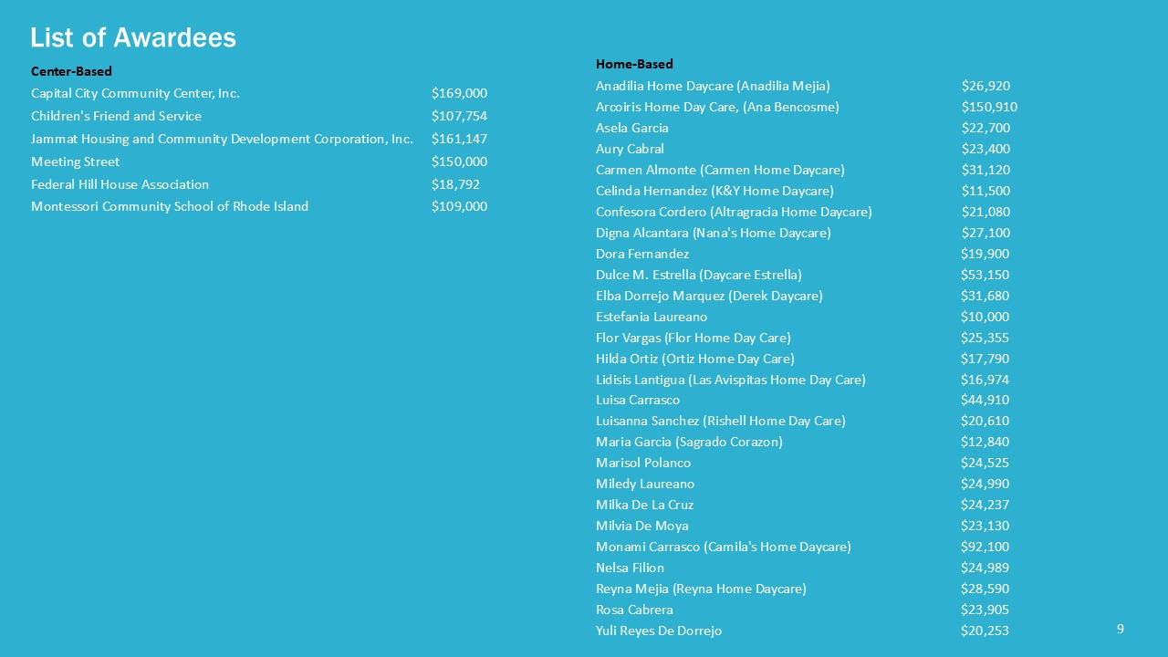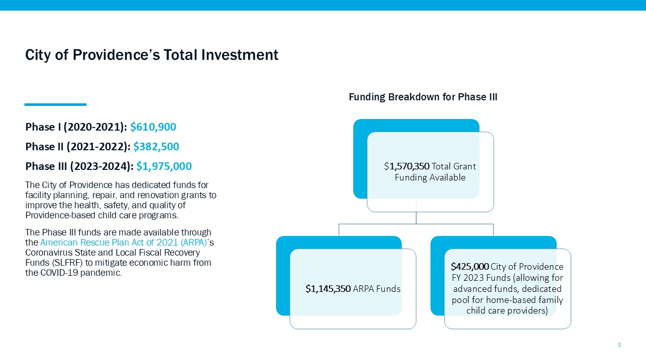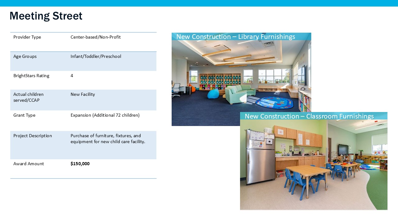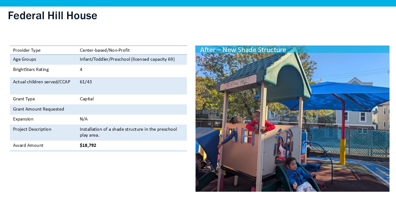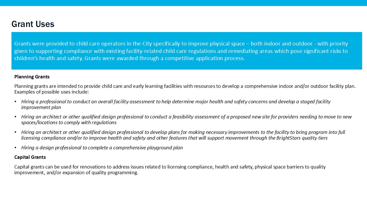 Grants were available to Providence-based child care providers for the planning and renovation of physical space during the period of July 1, 2023 through September 19, 2025.